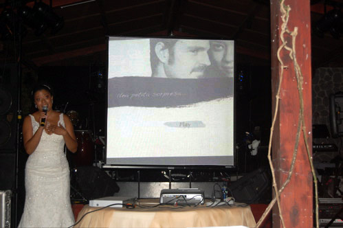 Luego hicimos una pausita. Yo me pensaba que era solo para tirar el ramo, pero resulto que Denise me guardaba una última sorpresa. Proyectó un video muy bonito, un montaje con fotos mías desde que nací hasta que nos conocimos, con la canción "Bendita tu Luz" del grupo Maná. Ya podéis imaginar mi reacción. Deshidratadito acabé.