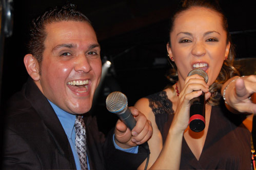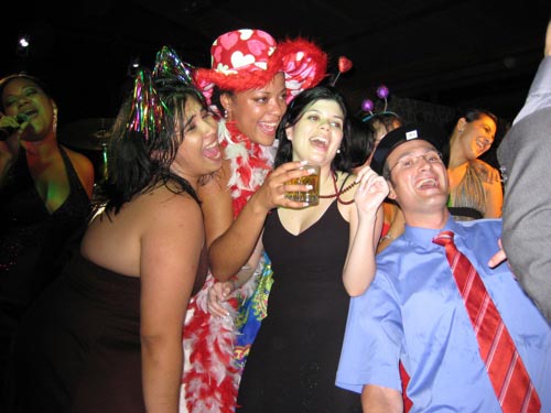 A mitad de la fiesta ya no se notaba quien era invitado de quien, porque los invitados hicieron migas entre ellos. La que canta a la izquierda es Shara, la hermana de Denise y siguiendo hacia la derecha están Pey, Denise, Andrea, Christian y Maria José.