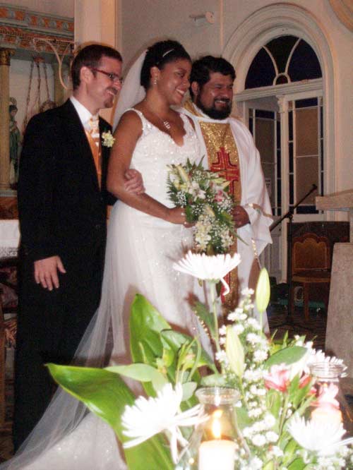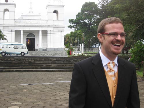 Nada más acabar la ceremonia y después de sacar las fotos de grupo, salimos escopeteados de la iglesia. Por orden de la maestra de ceremonias no nos paramos a saludar a nadie y no hubo lanzamiento de arroz a la salida de la iglesia, porque está prohibido por ley aquí en Costa Rica.