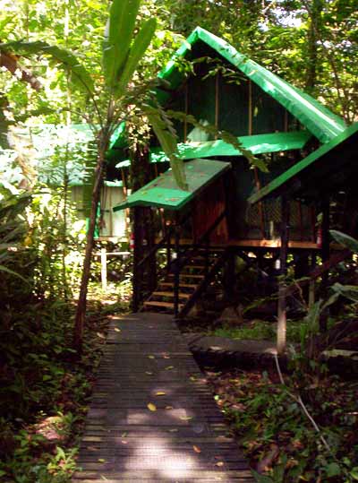 Esta es la habitación de hotel donde nos quedamos este finde. La caseta descansaba sobre unos pilares de madera, para separarla del húmedo suelo del manglar, las paredes eran de tela mosquitera y la división entre baño y dormitorio estaba echa de lona de tienda de campaña. Era de lo más exótico y original.